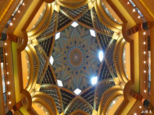 該酒店耗資近30億美元,坐擁85公頃園林和1.3公里黃金海岸,是一座古典式的阿拉伯皇宮式建筑。酒店的外形仿佛是一座水上清真寺,有著濃郁的中東風(fēng)情。其內(nèi)部更是金碧輝煌。據(jù)說(shuō)耗盡22噸純金打造,更有海量的大理石、價(jià)值不菲的油畫(huà)裝飾和上千盞特別定制的施華洛世奇水晶吊燈……據(jù)說(shuō),有10名工作人員專職保持其清潔。
