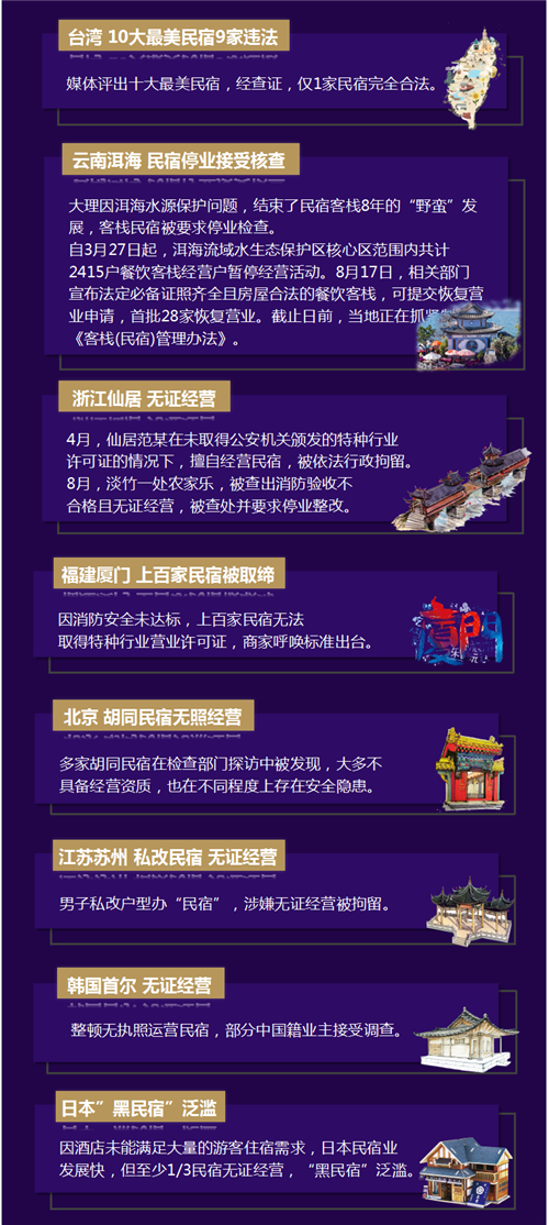 民宿業從“摸石頭過河”轉為“有規可循”的經營管理狀態,仍會出現“適應不良”的問題。2017年,有多家民宿因無證經營、消防驗收不合格、將商品房私改民宿等被相關部門查處并要求停業整治。
