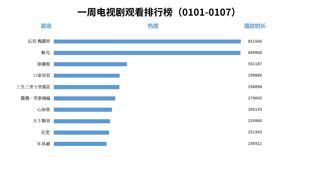 新聞來源:宏輝智通 發布日期:2018-01-18 瀏覽次數:3110【流媒體網】消息:廣東IPTV發布1月1日-1月7日電視劇、電影、綜藝、卡通節目觀看排行榜。電視劇觀看排行榜前三位是《后宮·甄嬛傳》、《蜂鳥》、《瑯琊榜》; 電影觀看排行榜前三位是《羞羞的鐵拳》、《銀翼殺手2049》、《瘋狂動物城》;綜藝觀看排行榜前三甲是《快樂大本營》、《奔跑吧兄弟4》、《蒙面唱將猜猜猜2》;卡通觀看排行榜前三位是《熊出沒》、《兔小貝兒歌》、《汪汪隊立大功》。