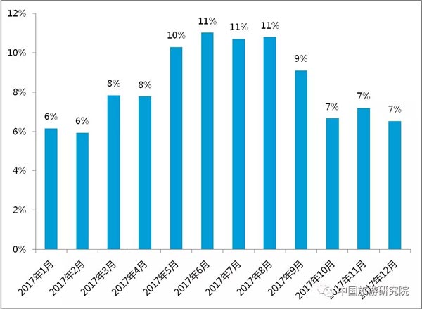 從2017赴歐洲旅游游客出行時(shí)間分布來(lái)看,夏季為歐洲旅游旺季,5-9月出游人數(shù)占全年的52%。冬季歐洲氣候寒冷,是歐洲的旅游淡季,游客更青睞氣候溫暖的亞熱帶以及南半球國(guó)家。