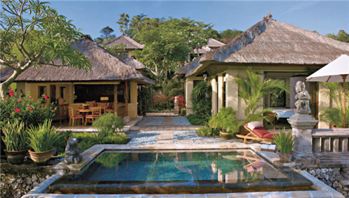 既然是蜜月酒店,浪漫程度肯定不必說。美麗的日出、蜿蜒的海灘、依山傍海、雕梁畫棟,這些都是金巴蘭灣四季酒店無可比擬的特色。酒店建在蔥郁的小山丘上,低頭就是擁有無比美麗日出的金巴蘭灣。別墅內充滿巴厘島元素,卵石步道、彩繪木雕,還有散落在屋里的手工家具,處處散發當地濃郁的文化特色。