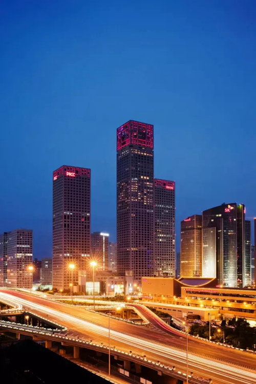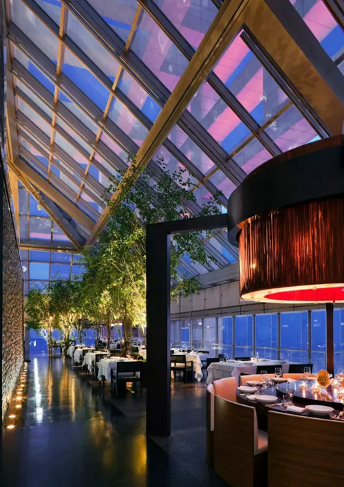 北京銀泰中心為北京柏悅酒店創造了 63 層大堂吧及前臺、65 層亮餐廳和亮酒吧 360 度視角看北京的可能,大褲衩隨便拍,中軸線就在眼底,尤其入夜后,主樓頂部“中國燈籠”造型燈光璀璨,如燈塔般光芒四射。