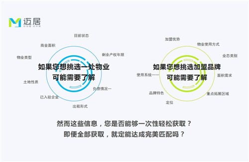 資源配置、提升價值一定是基于輝視網數據維度評價的,邁居的初心就是希望在市場的大環境之下,讓品牌有持續發展的空間,讓一些物業通過這個平臺,找到更多的品牌,滿足需求,邁居有很多的服務模式,可以做區間服務,也可以做線上推廣,我們平臺的數據是免費開放給物業方,免費開放給品牌方的,他們可以在上面進行搜索、匹配、對接。