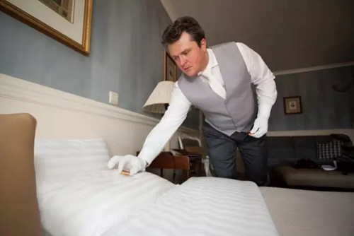 傍晚時分對已經(jīng)check in的房間進(jìn)行二次整理是大部分五星級及以上酒店都會提供的服務(wù)。除了對已經(jīng)入住房間的清理、拉閉窗簾外,更多的是在床邊鋪上腳墊,床頭放上飲用水和杯子,遙控器放在床頭或是專門的容器里等一切想客人所想之服務(wù)。