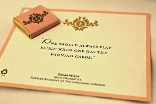 天津利順德大飯店始建于1863年,曾經(jīng)接待過眾多全球領(lǐng)導(dǎo)人并見證過許多標(biāo)志性的活動,因其引以為傲的歷史被稱為“外交酒店”。酒店的夜床禮物是將飯店一百五十余年歷史融入其中的紀(jì)念版明信片或下榻過酒店的孫中山、胡佛、張學(xué)良,梅蘭芳等歷史名人紀(jì)念書簽。每天一張不同的明信片或歷史名人書簽,幸運(yùn)的客人會集齊一套。