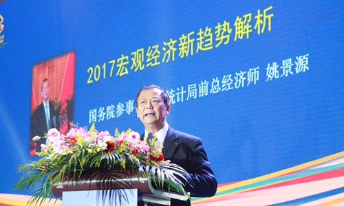 國務院參事、國家統計局前總經濟師姚景源為與會嘉賓解析“2017宏觀經濟新趨勢”。