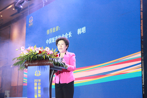 中國飯店協(xié)會(huì)會(huì)長韓明發(fā)表了開幕致辭。