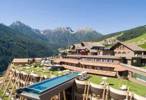 近日,一間專門提供給滑雪者與健行者的酒店Hotel Hubertus進行改造,在其頂層建了一個非常考驗勇氣的泳池。