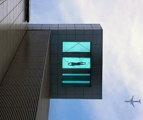 國際建筑事務所Aedas在香港設計了英迪格(Indigo)酒店,其特色是在酒店頂樓(29層)的邊緣上懸浮著一個游泳池。