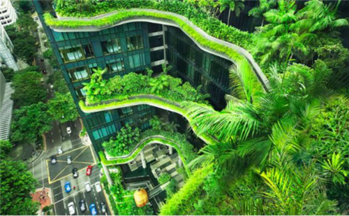 在今年英國皇家建筑師協會(RIBA)公布的 " 過去三年的 30 個優秀建筑 " 的名單里,WOHA 設計的新加坡皮克林賓樂雅酒店名列其中。這座 " 花園酒店 " 擁有面積約 1.5 萬平方米、樓高四層的繁茂園林、瀑布和花墻,是酒店總占地面積的兩倍以上。除了這些姿態各異的植物群,這家酒店還采用了綜合性節能節水措施,與此同時,它還是新加坡首家使用太陽能電池供電的零耗能酒店。