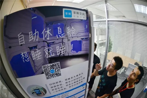 代建功做的事情是在原有睡眠艙的基礎上增加掃碼開門,增加了小程序內(nèi)付費,增加了自助床單毛毯,并把應用場景從機場、旅館變成了辦公室午休。