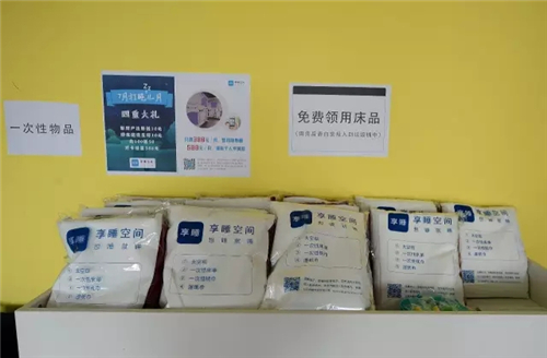 成都銀泰城設點共享睡眠艙提供的一次性用品。成都商報 王效/視覺中國