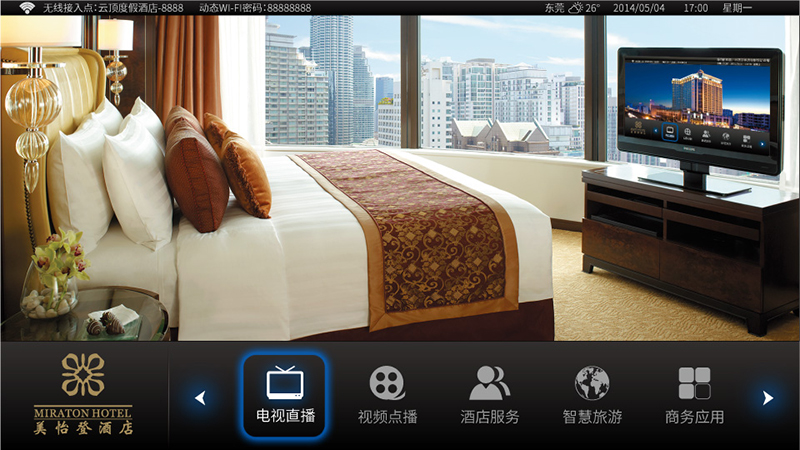 二、客房使用了“輝視”酒店IPTV系統(tǒng)