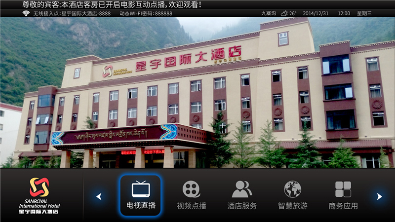 方案功能:安裝了酒店VOD點播和酒店IPTV系統,酒店實現了電視直播,電影的VOD點播,酒店服務和智慧旅游,同時還有商務助手和家庭小游戲集合在一起。